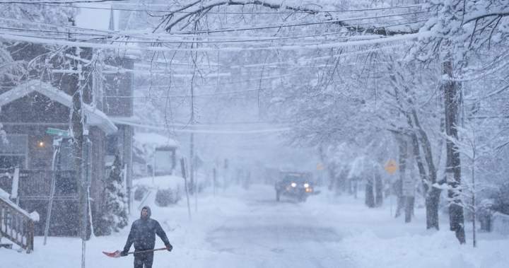 The weather office says northwestern Nova Scotia and Cape Breton Island can expect to see as much as 25 centimetres of snow by Tuesday, while Bridgetown and Yarmouth in the province’s south can expect the same amount.